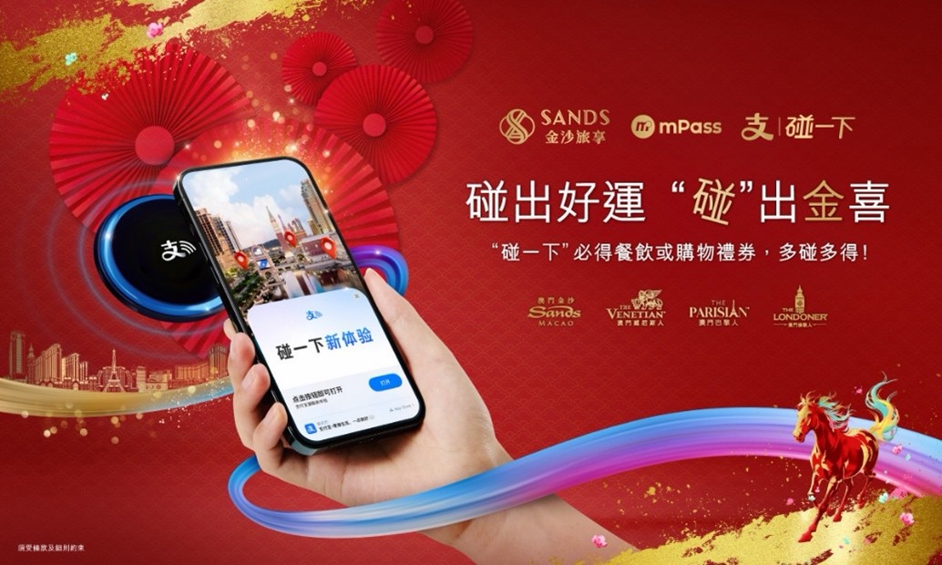 金沙中國有限公司於農曆新年期間宣布與支付寶及澳門通深化合作,全面升級智慧旅遊消費體驗。三方推出的「碰出好運碰出金喜」馬年新春主題活動,基於支付寶「碰一下」交互技術,結合互動打卡及會員服務,吸引更多訪澳旅客並推動本地文旅消費數字化。